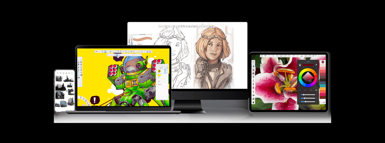 Free and virtually having no learning curve, SketchBook is often recommended to those just starting to create digital illustrations.